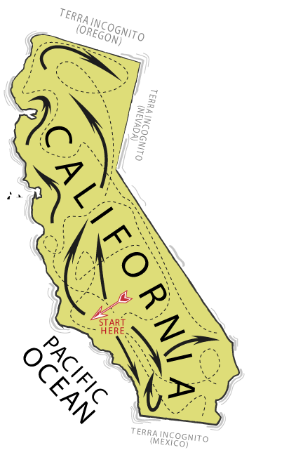 Follow all the dotted lines and arrows to find the lost and hidden treasures of California.