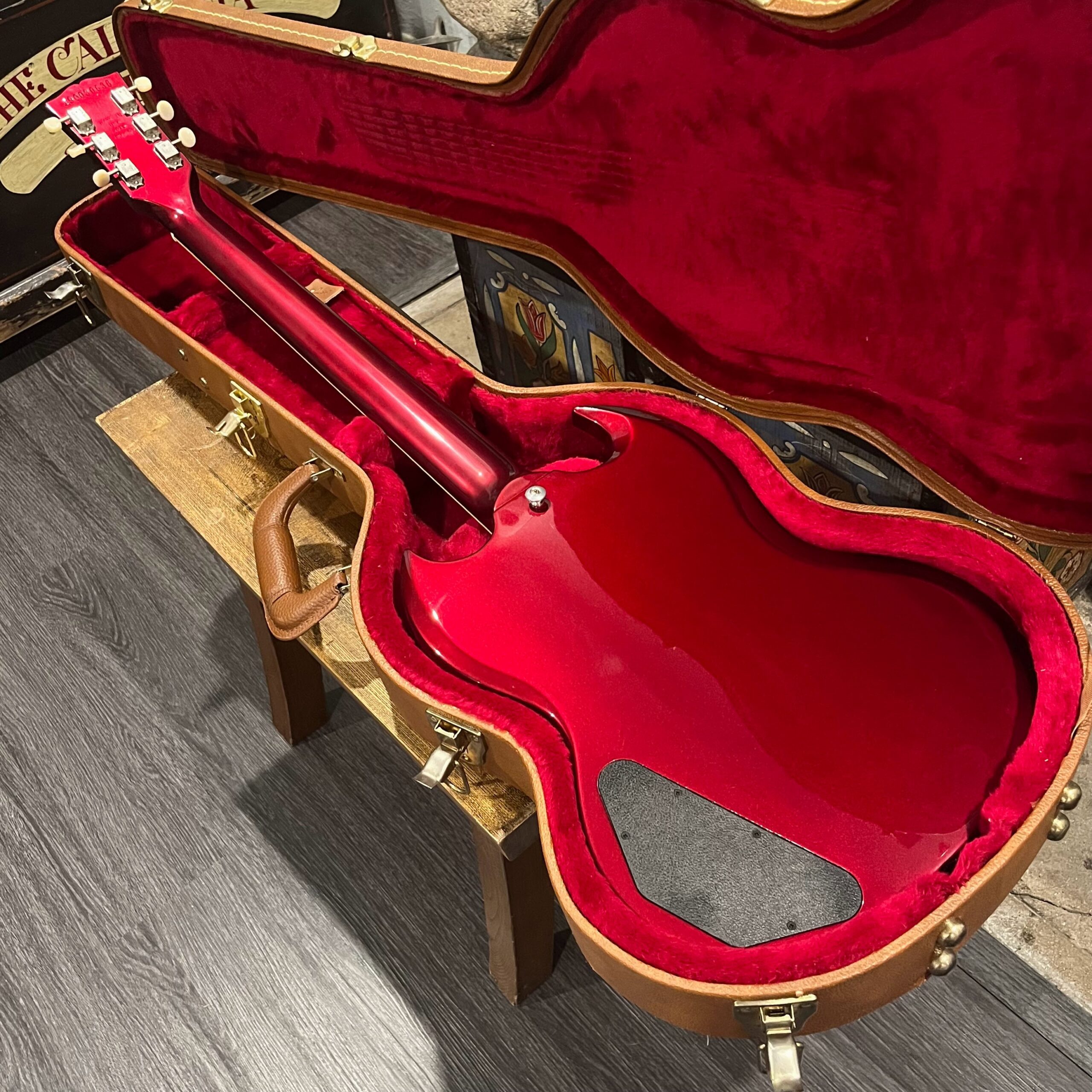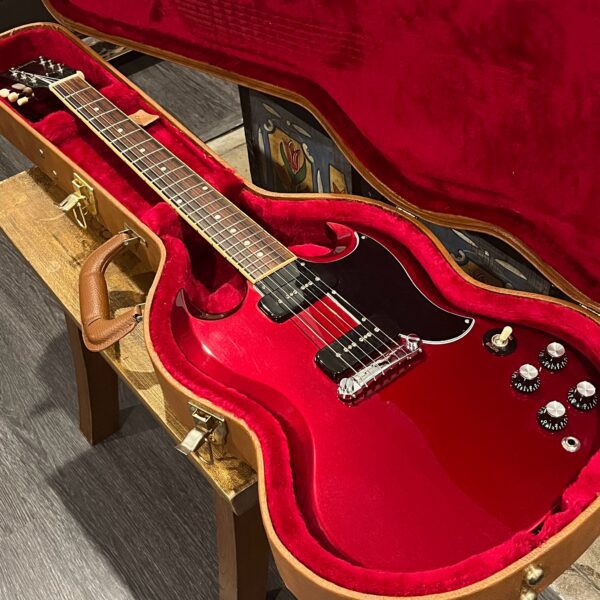 Altogether, this SG Special stands as a nod to the instrument’s rebellious roots. From garage rock to blues to heavy riffs, its timeless design and sonic signature remain as relevant and inspiring today as they were decades ago. This one comes with the original hardcase, papers, and tools from the factory, setup on 10s – weighing a feathery 6lb 10oz.