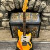 The neck pickup reads 5.7k, the bridge reads a hot 9.1k. Comes in an aftermarket hardcase with tremolo arm. All the usual in an out of phase switching is stock, all the wiring is of the vintage cloth type, makes lots of great noises, has mad energy, looks and feels great doing it. Weighs a lightweight 7lb and 6oz and is setup on 10s.