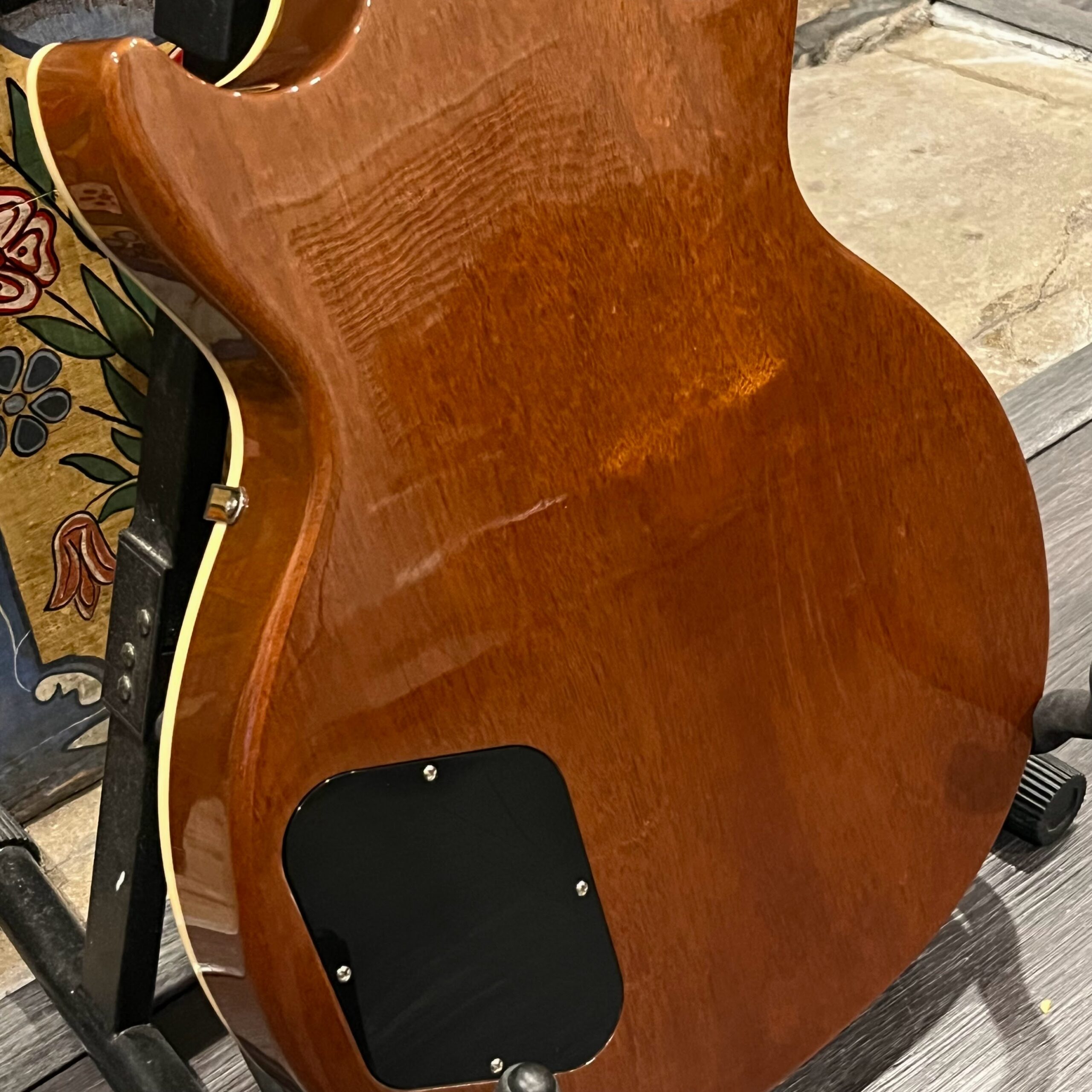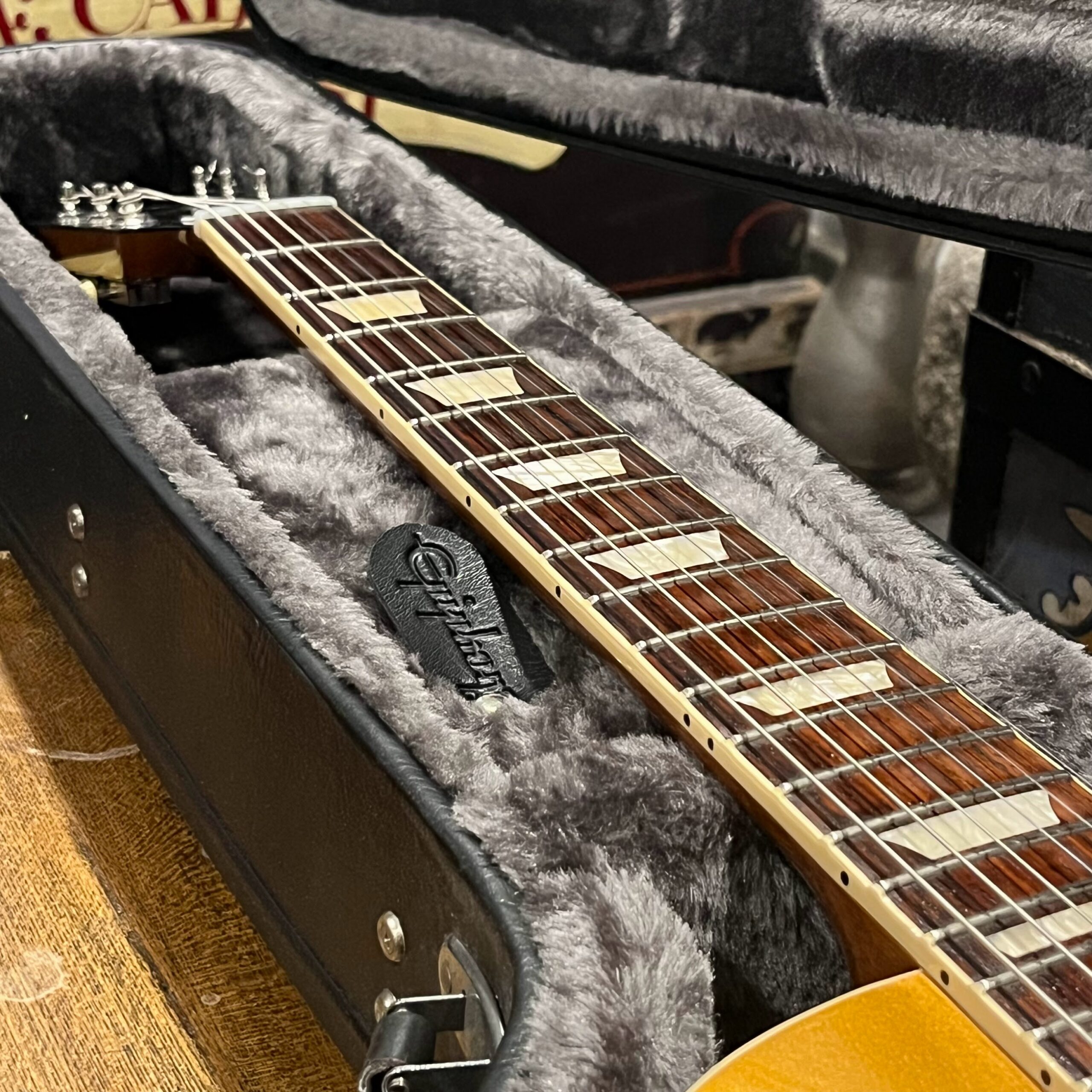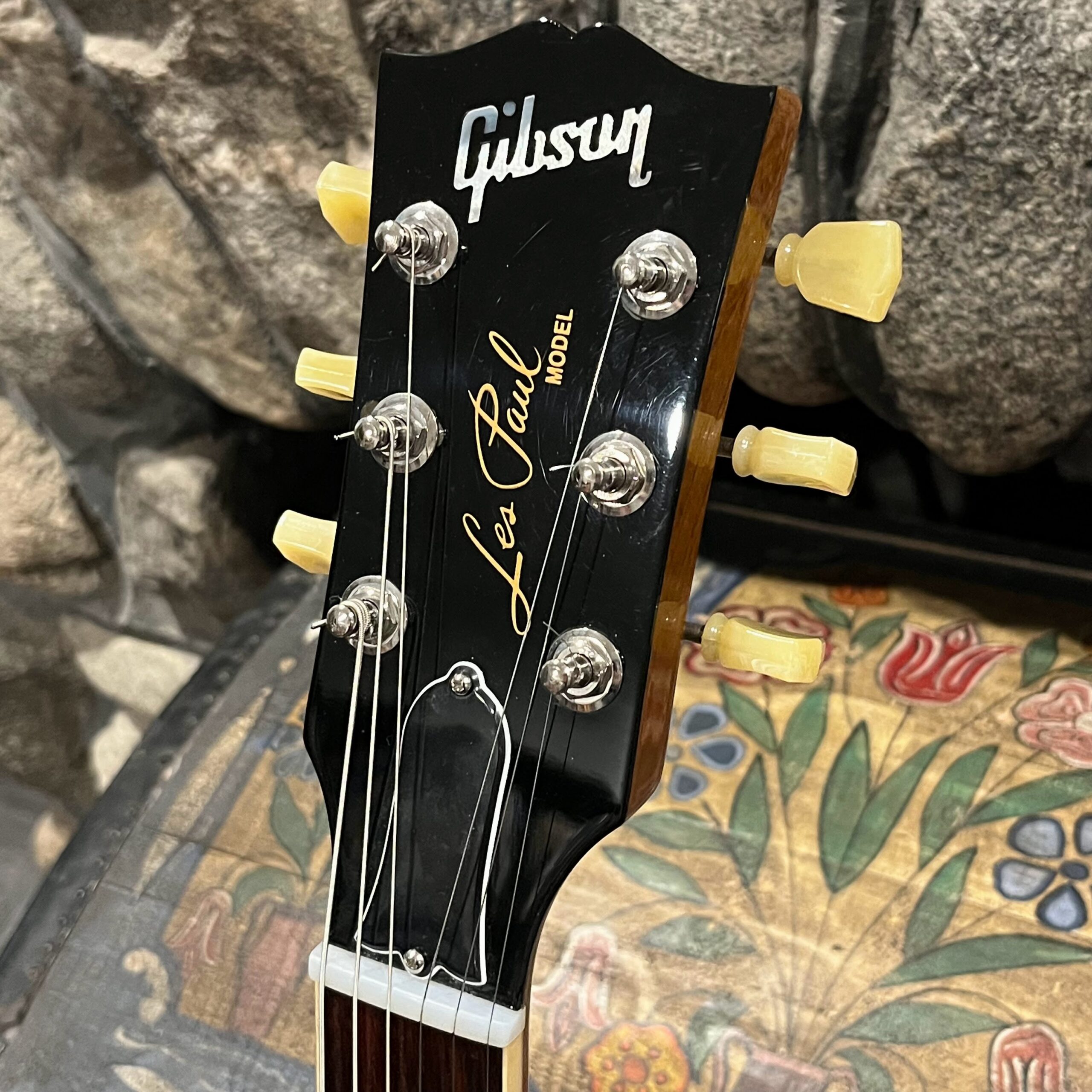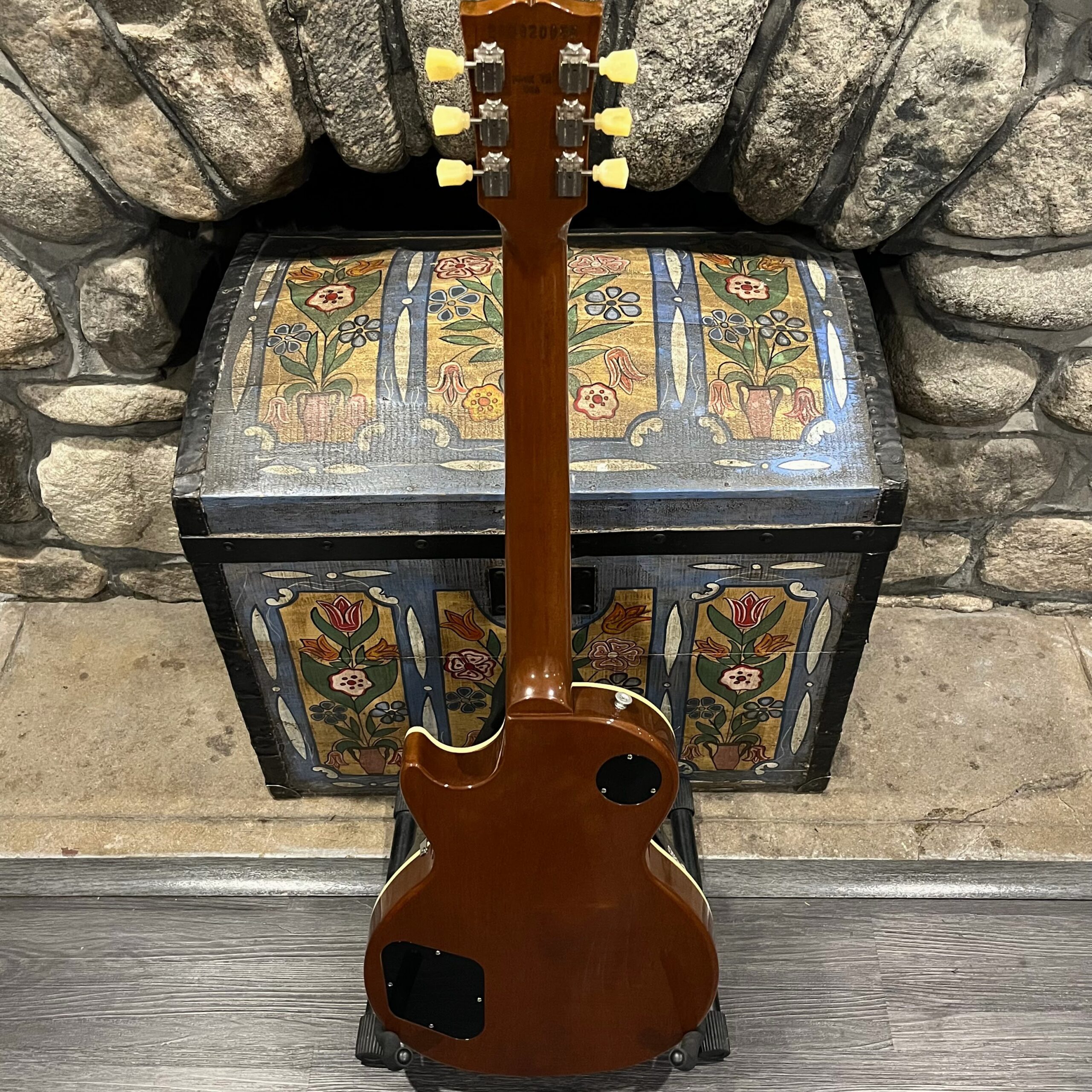 2022 Gibson 50s Les Paul Goldtop dressed with a Bigsby B7 and Suhr Thornbucker in the bridge position to resemble a certain signature model Les Paul with the initials SV. Stock Gibson p90 pickup in the bridge position, gold Speedknobs, thumbleeders, vinyl nut, 50s style ABR bridge, bound rosewood 22 fret neck with a 50s profile. Setup on 10s, weight 10lb and 3oz – old school on the scales, not a lightweight by any means. Comes in an aftermarket hardcase with some factory papers and truss rod tool, original Deluxe truss rod cover. Original wiring, Orange Drop Capacitors. Definitely not a Sergio Vallins signature instrument.